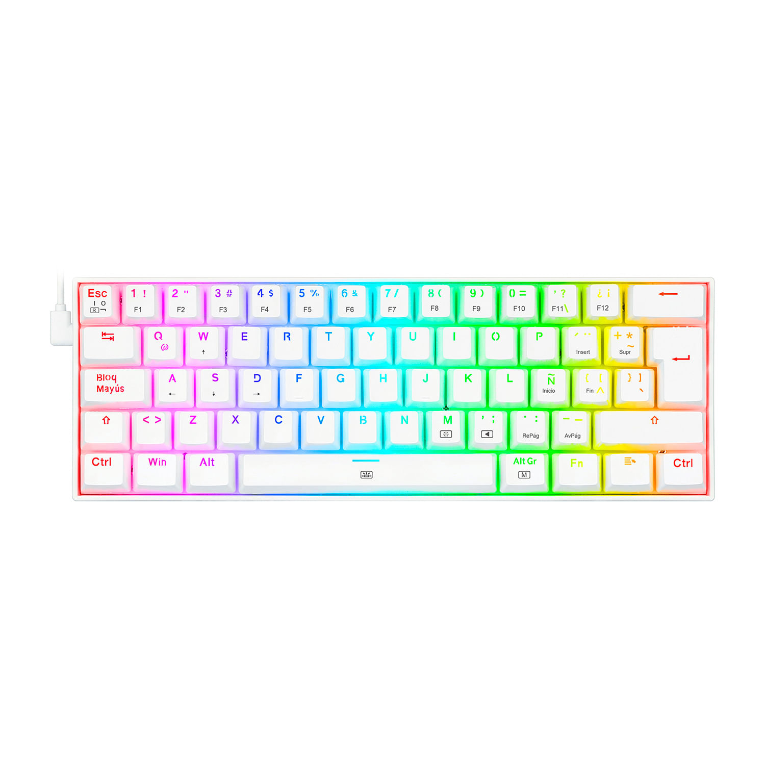 Teclado Gamer Redragon Kumara Blanco Rainbow Tkl, Español, Red Switch$1,545