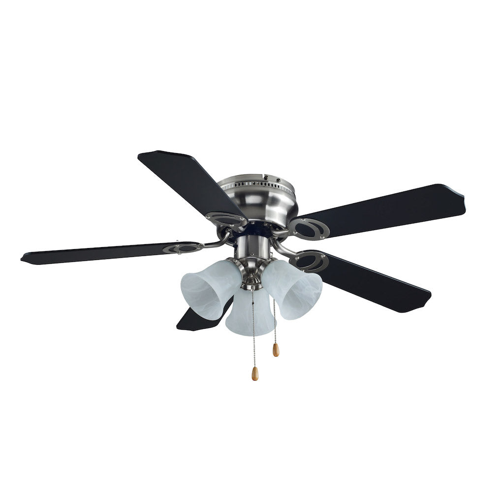 Ventilador 42'' 60W 3Luz Cadena / cuerpo niquel pulido y aspas negras ARIA$1,599