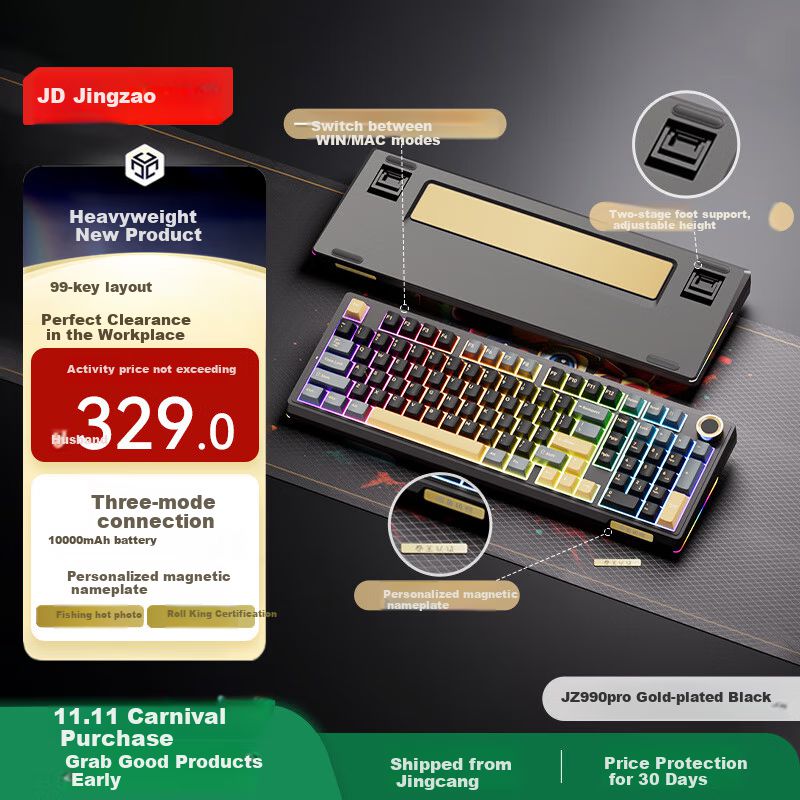 Teclado Mecánico Jingdong JZ990Pro Negro Dorado RGB Tri-Mode