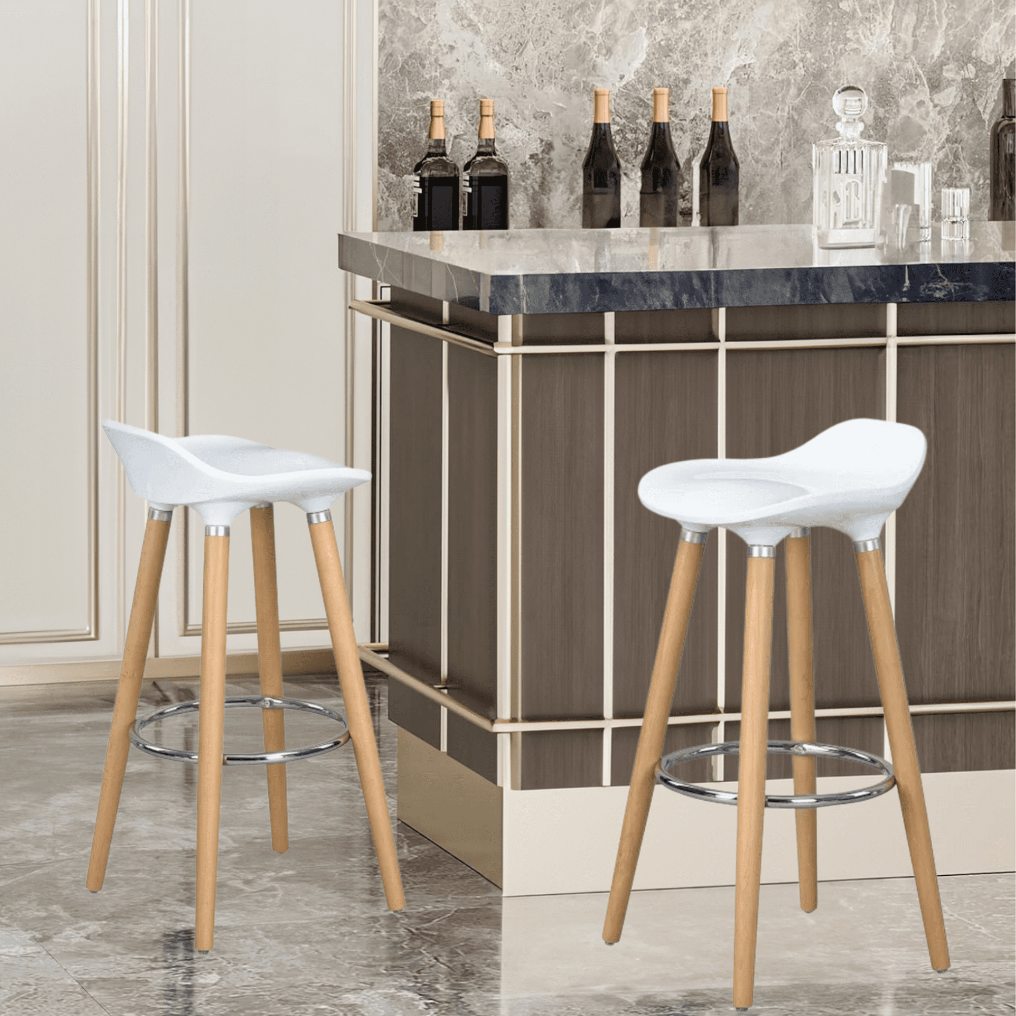 Juego de 2 bancos para barra furniturer silla de bar jasmine pp blanco moderno$2,069