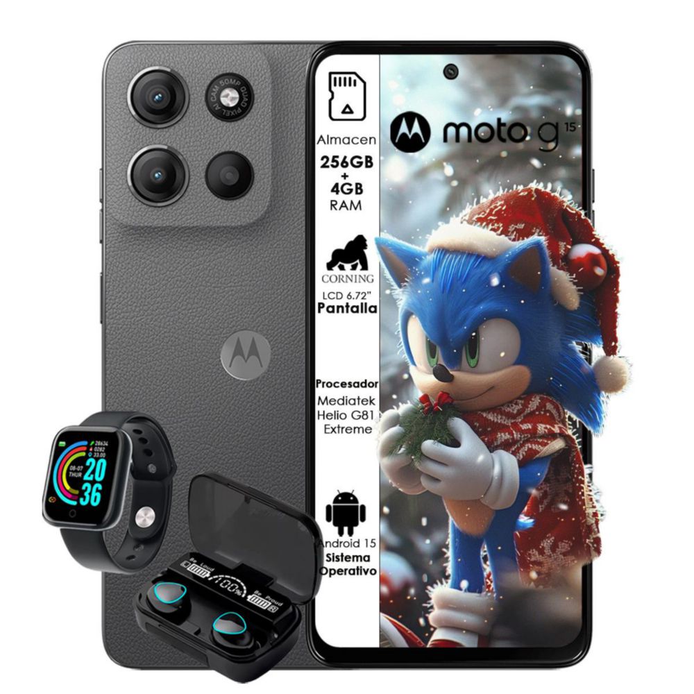 Celular Motorola Moto G15 256GB Dual sim 4GB RAM Gris + Smartwatch y Audífono inalámbrico$2,549